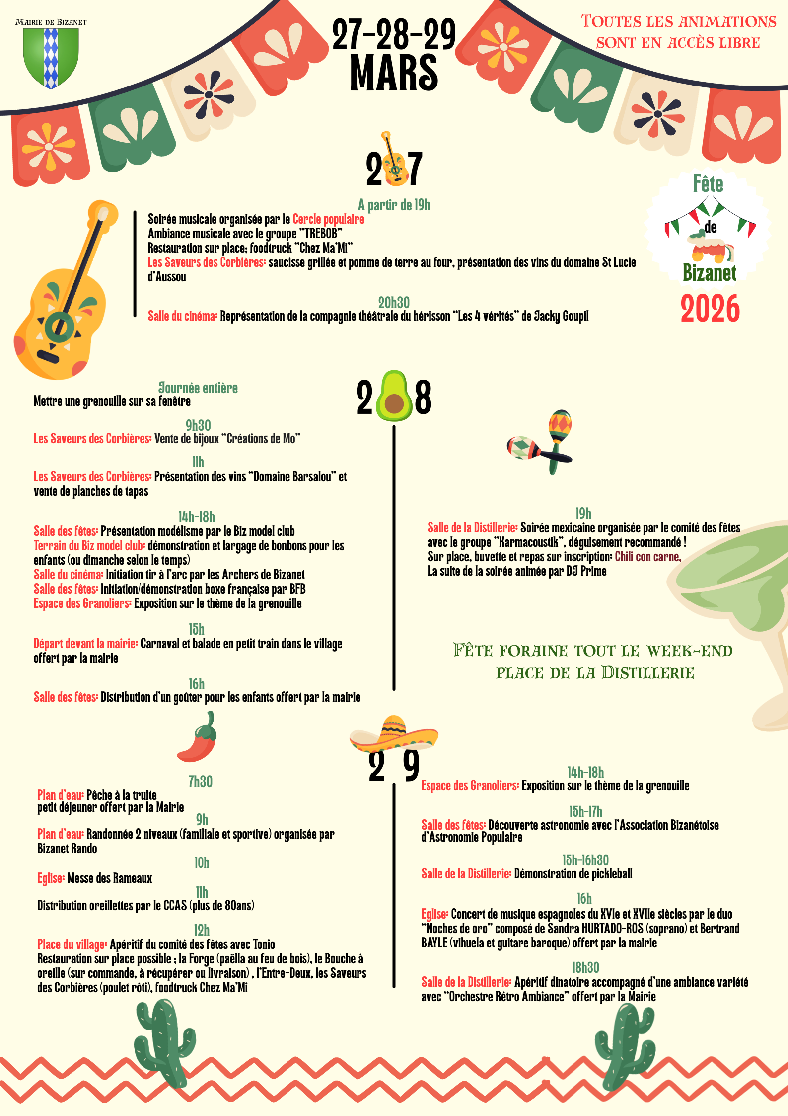 Les 27, 28 et 29 mars 2026, voici le programme: