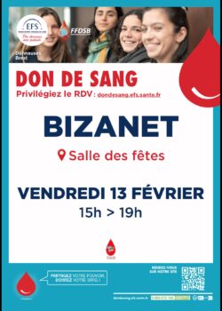 Nous vous donnons RDV à Bizanet, vendredi 13 février de 15h à 19h à la salle des fêtes.