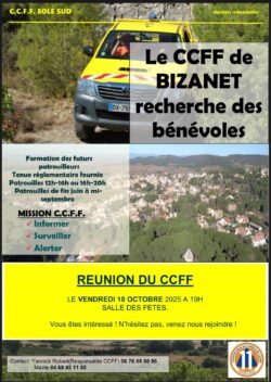 Le Comité Communal des Feux de Forêts tiendra sa réunion de fin de saison le 10/10/25 à 19h à la salle des fêtes.